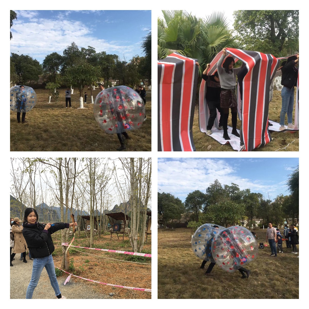 在拓展基地教官的精心安排下,依次開展“歡樂碰碰球”、“無軌電車”、“無敵風火輪”等團隊項目的比拼,一場場實力相當的勁敵較量,一鼓作氣的瞬間秒殺,現場吶喊聲、鼓掌聲、歡笑聲此起彼伏,不斷將現場氣氛推向一個又一個高潮。此次精選項目一方面旨在加強培養員工在困難壓力下堅持不懈、敢于拼搏的精神,提高員工的積極性和主動性,增強團隊凝聚力。另一方面,讓員工在活動中放松身心,排解近期消極情緒,營造健康向上的氛圍,促使廣大員工以更高的熱情投入工作。